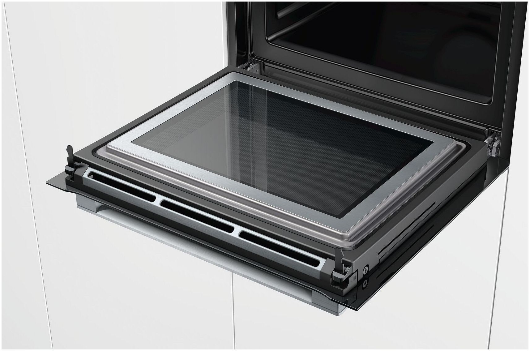 Режими готування:мікрохвильова піч, пароварка, термощуп, конвекція з нагрівачем, гриль