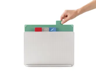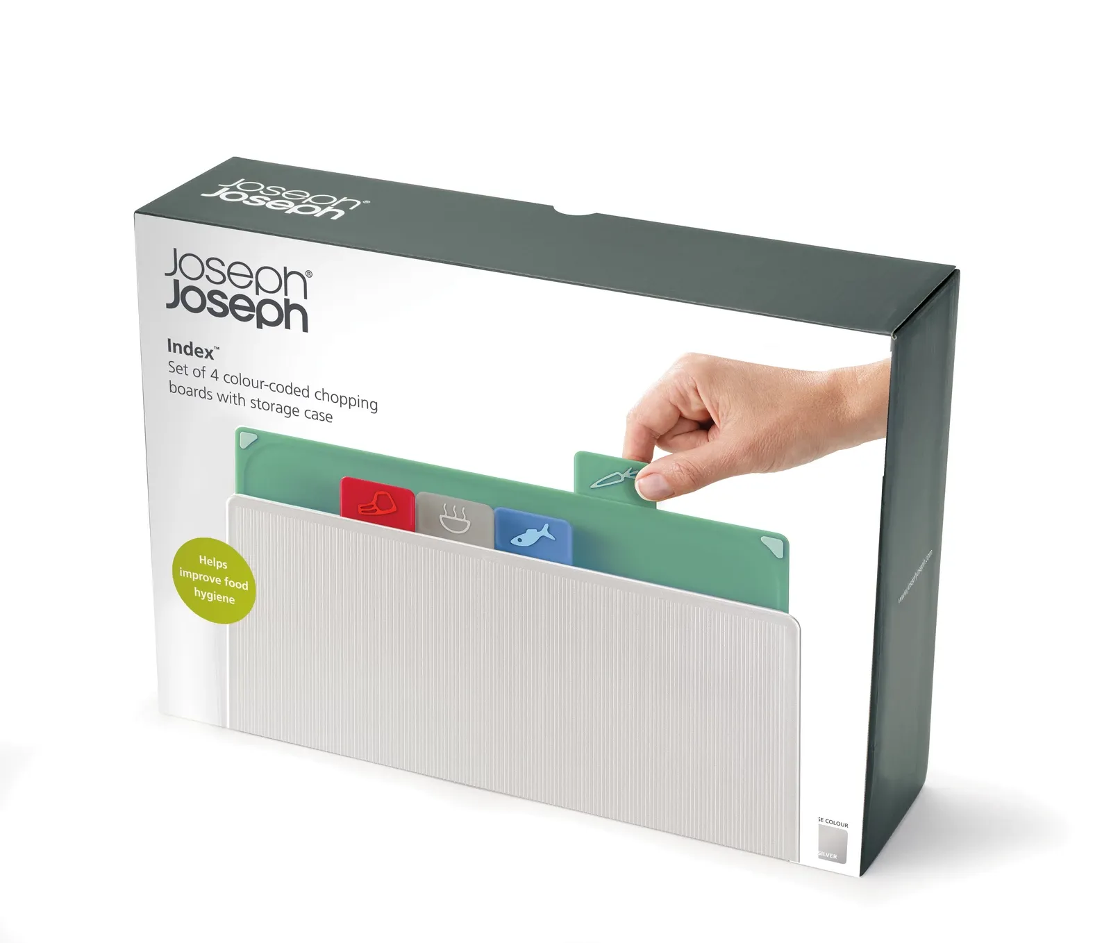 Новий набір дощок розділювальних від Joseph Joseph INDEX - це зручний і практичний набір, який складається з 4 різнокольорових дощок і спеціального кейсу для зберігання. Кожна дошка призначена для різних типів продуктів (м'ясо, риба, овочі, приготована їжа) і має власний колірний маркер для зручності використання. Цей набір допоможе уникнути перехресного забруднення продуктів і збереже їх свіжість та смак.