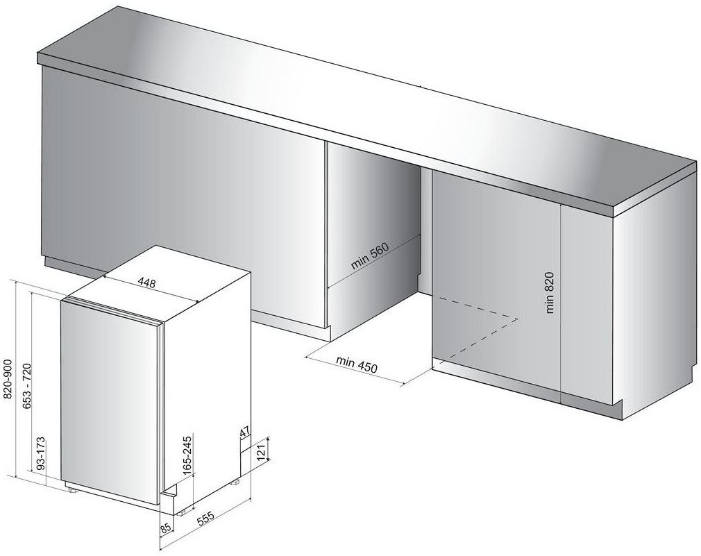- Розміри ніші для вбудовування (В-Ш-Г): 82-45-56 см